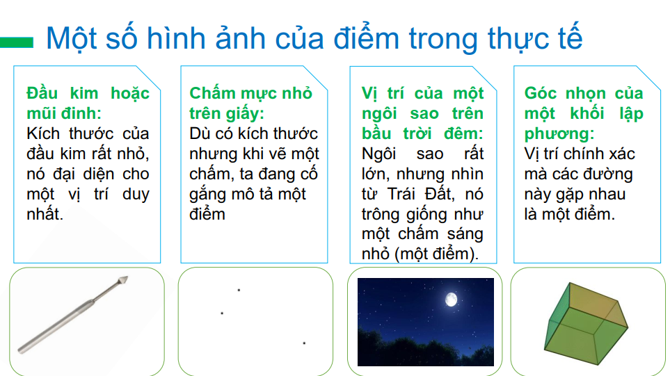- Chấm một dấu chấm nhỏ trên giấy ta được hình ảnh của một điểm.